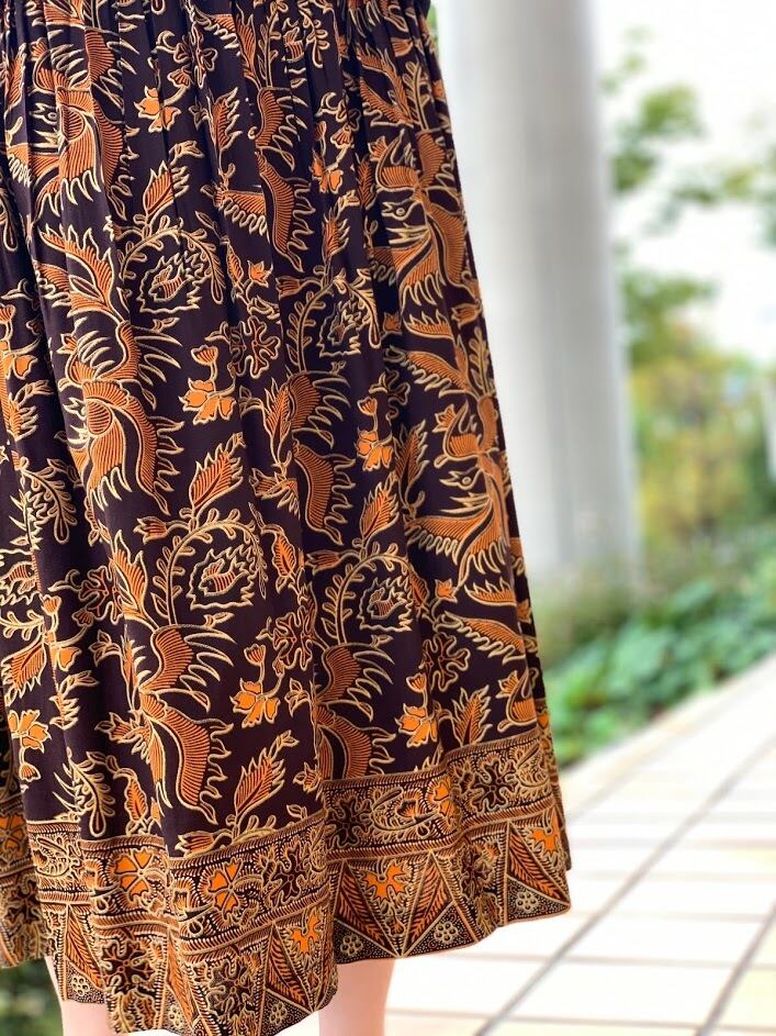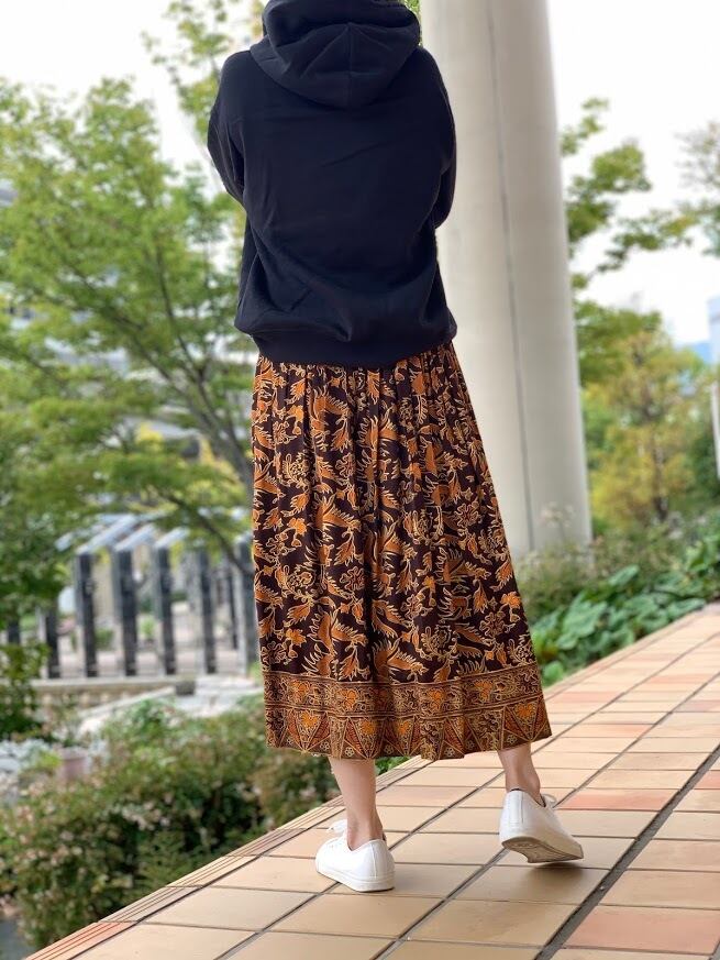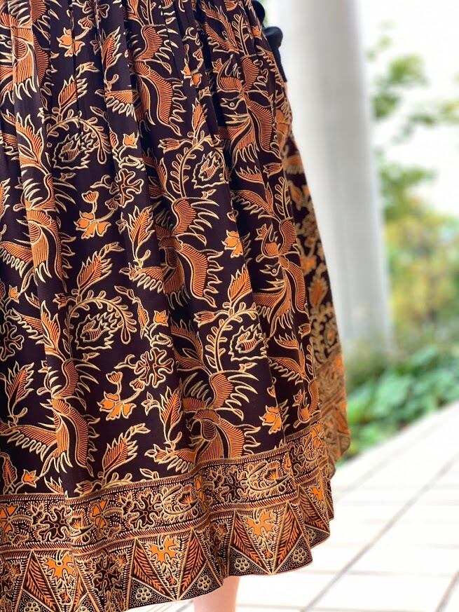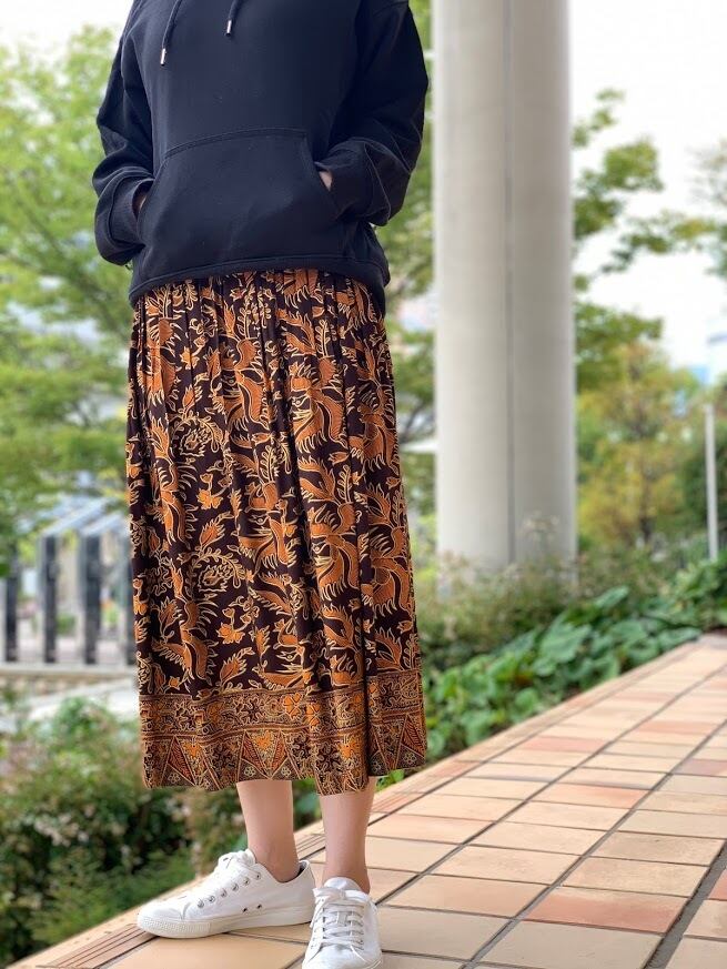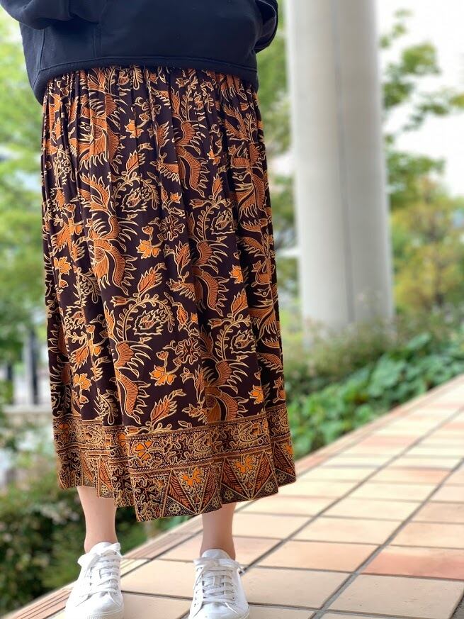 落ち感のある素材で作られた、ジャワ更紗スカート。