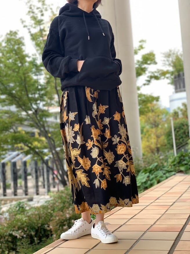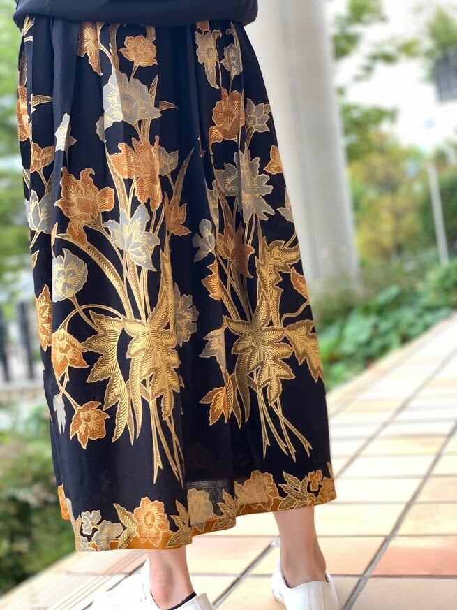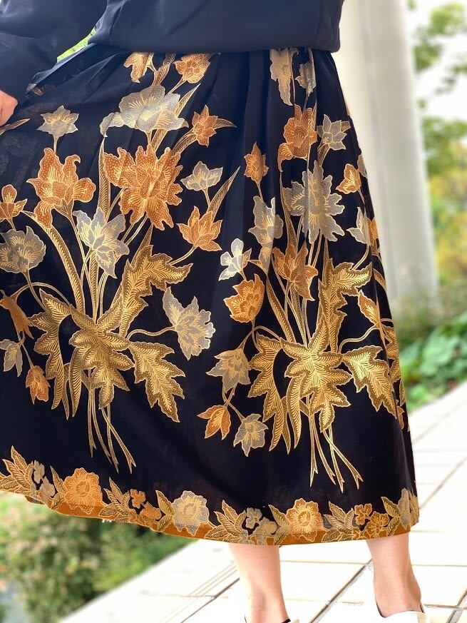 落ち感のある素材で作られた、ジャワ更紗スカート。