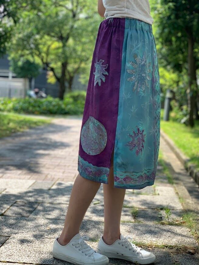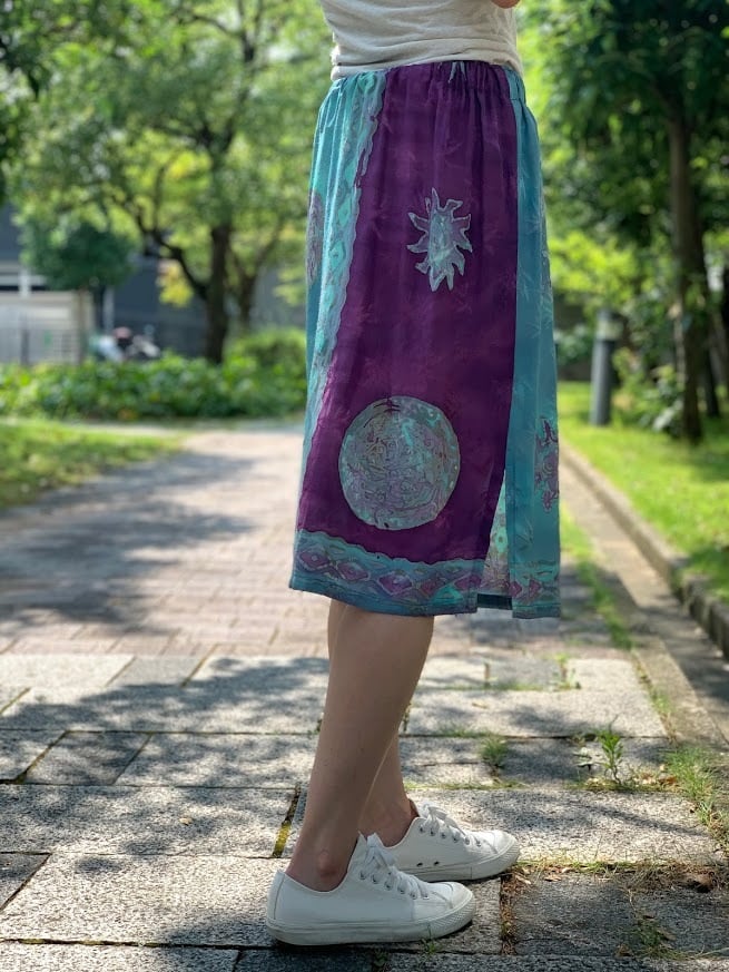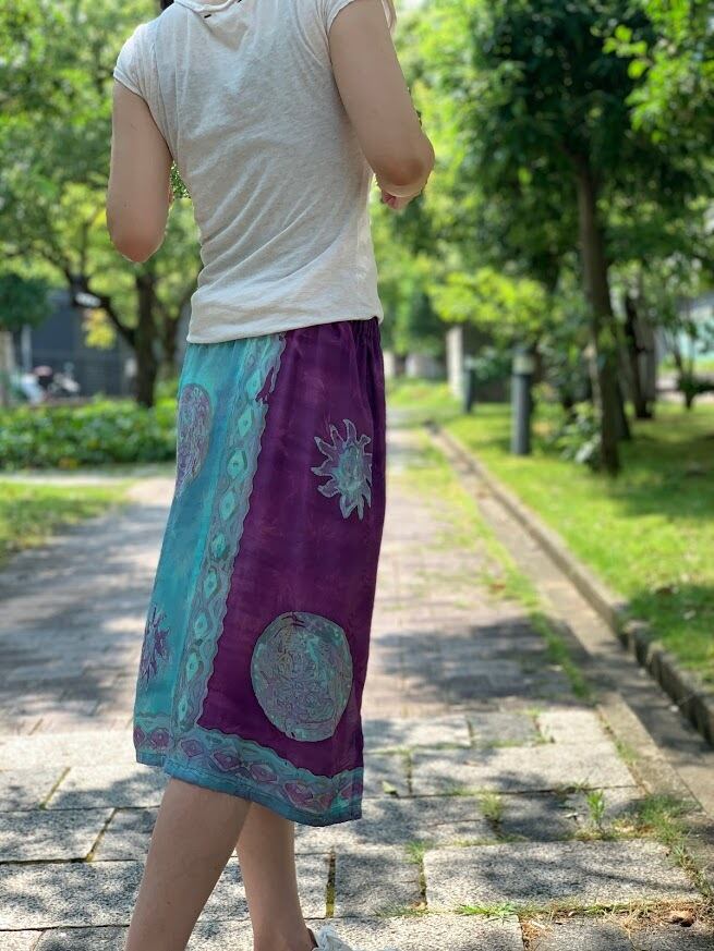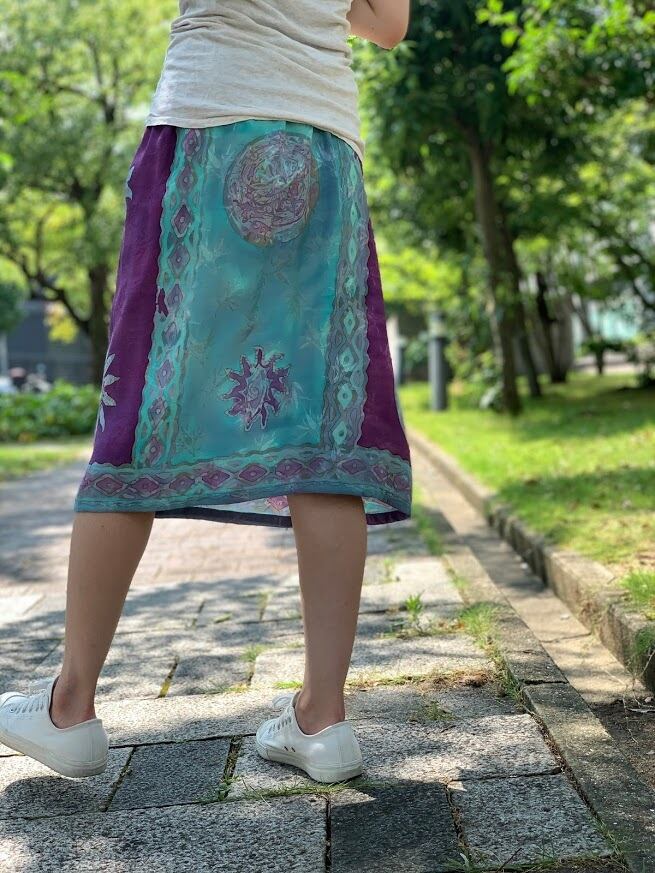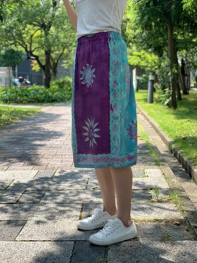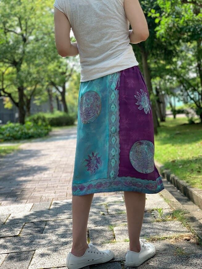 手書きと型押しのろうけつ染めで作られた、ジャワ更紗スカート。