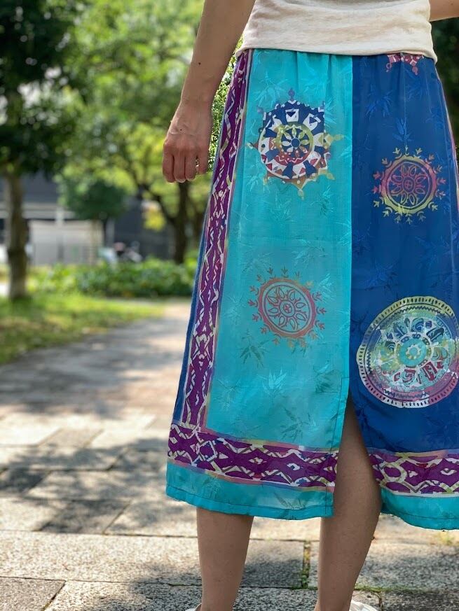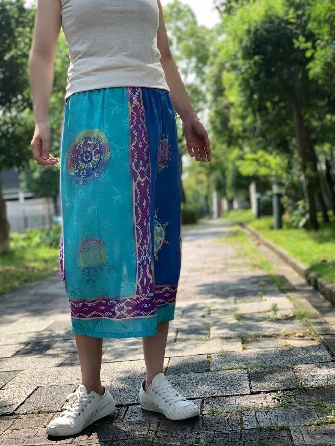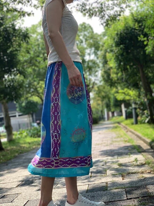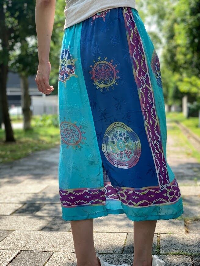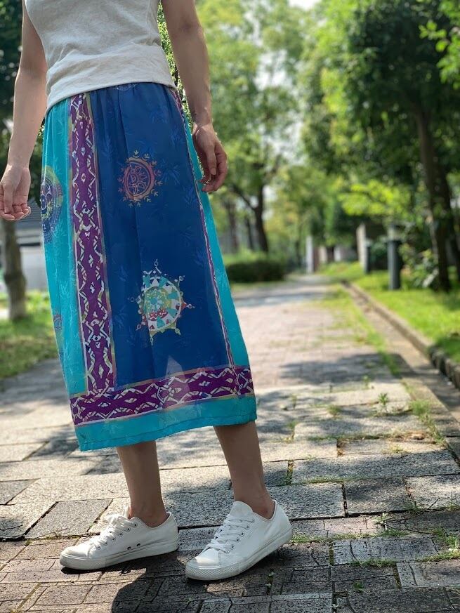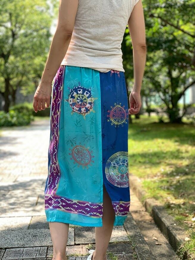手書きと型押しのろうけつ染めで作られた、ジャワ更紗スカート。