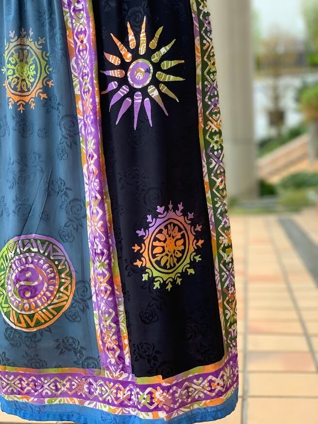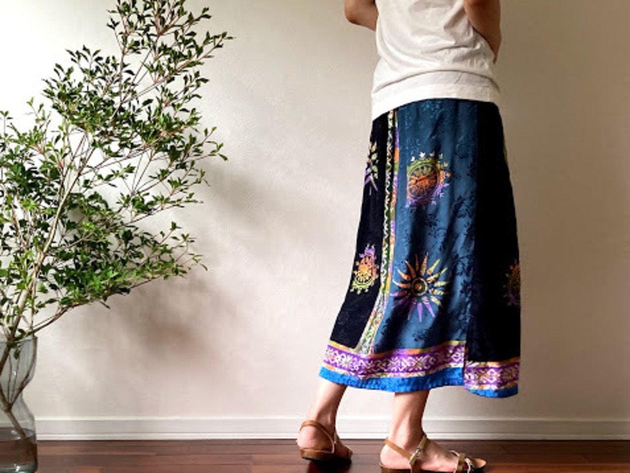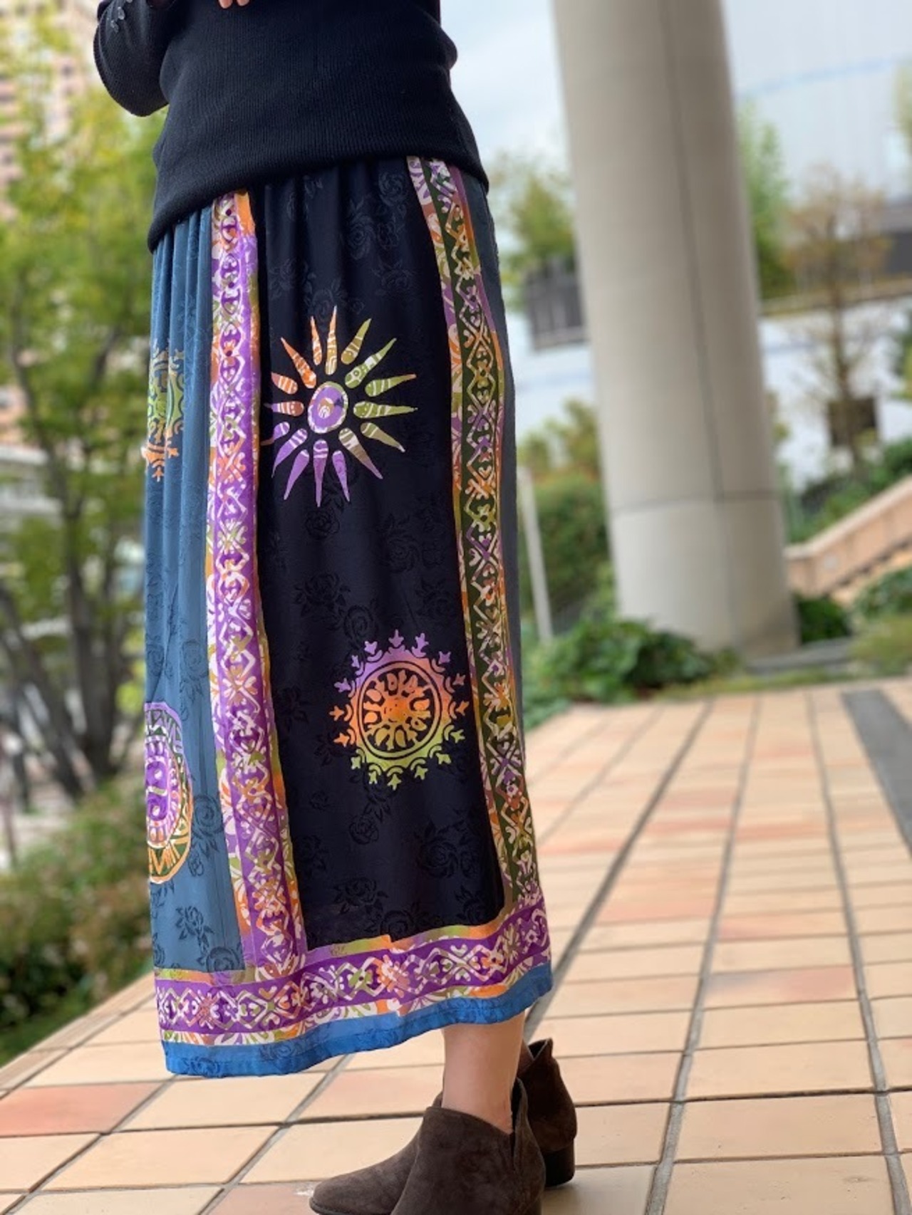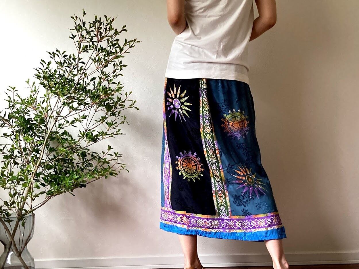 手書きと型押しのろうけつ染めで作られた、ジャワ更紗スカート。