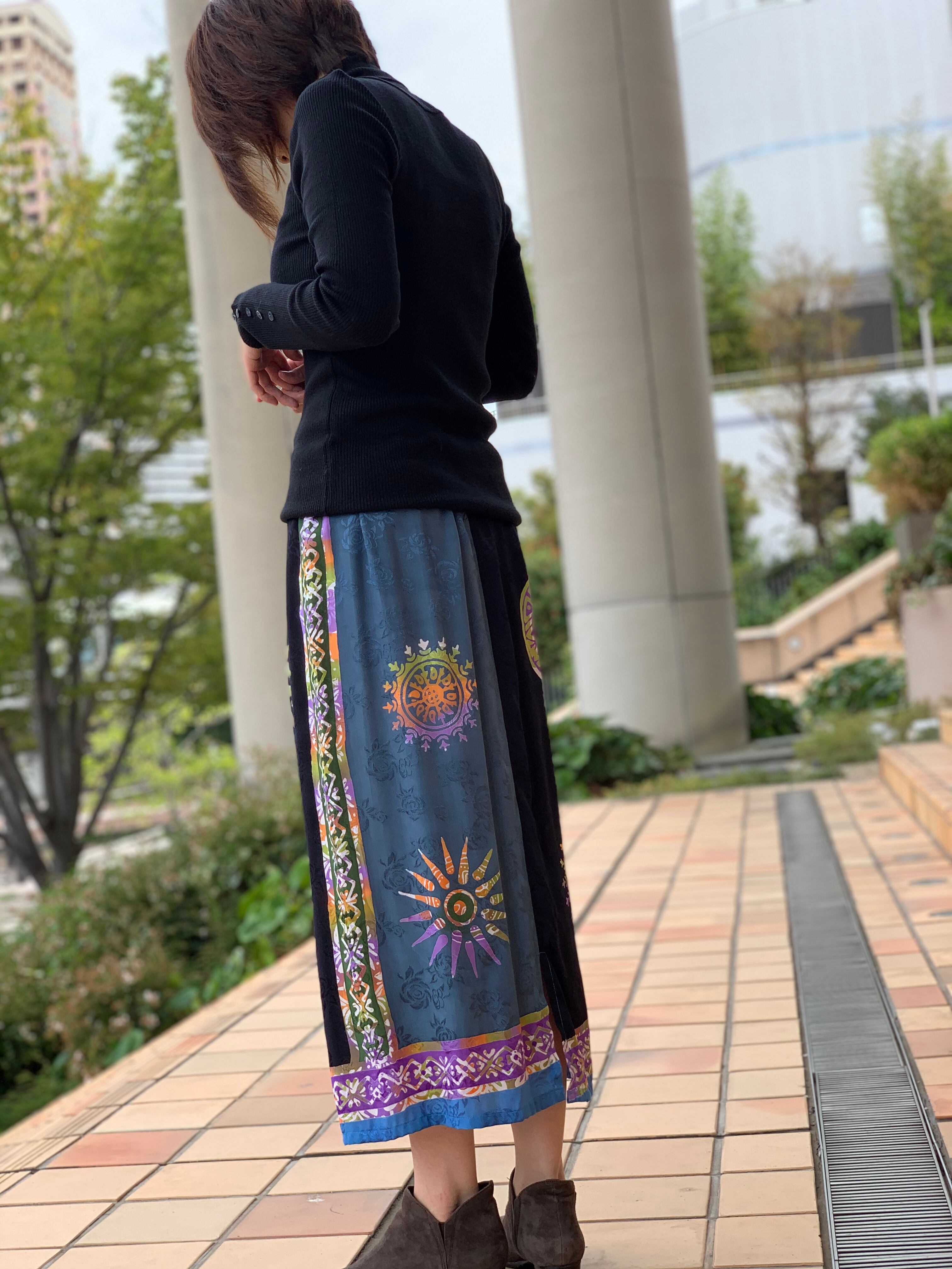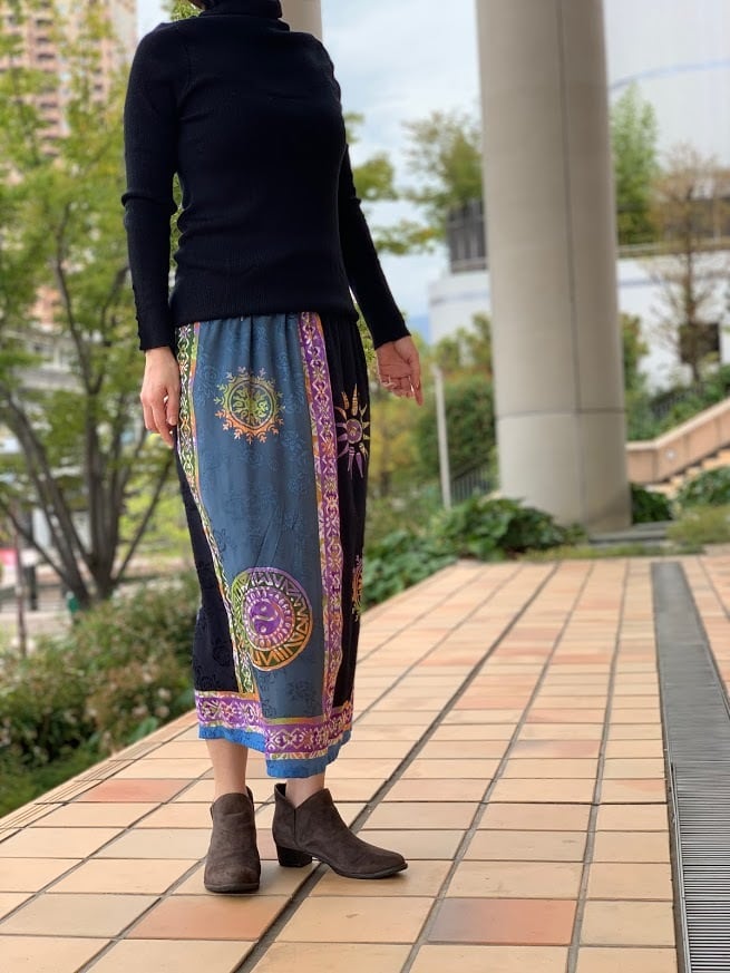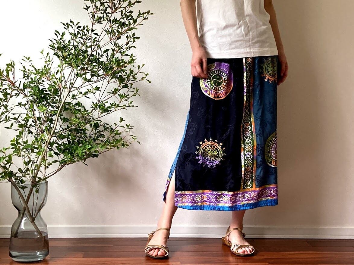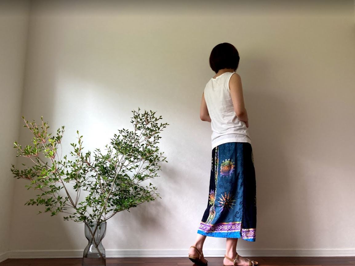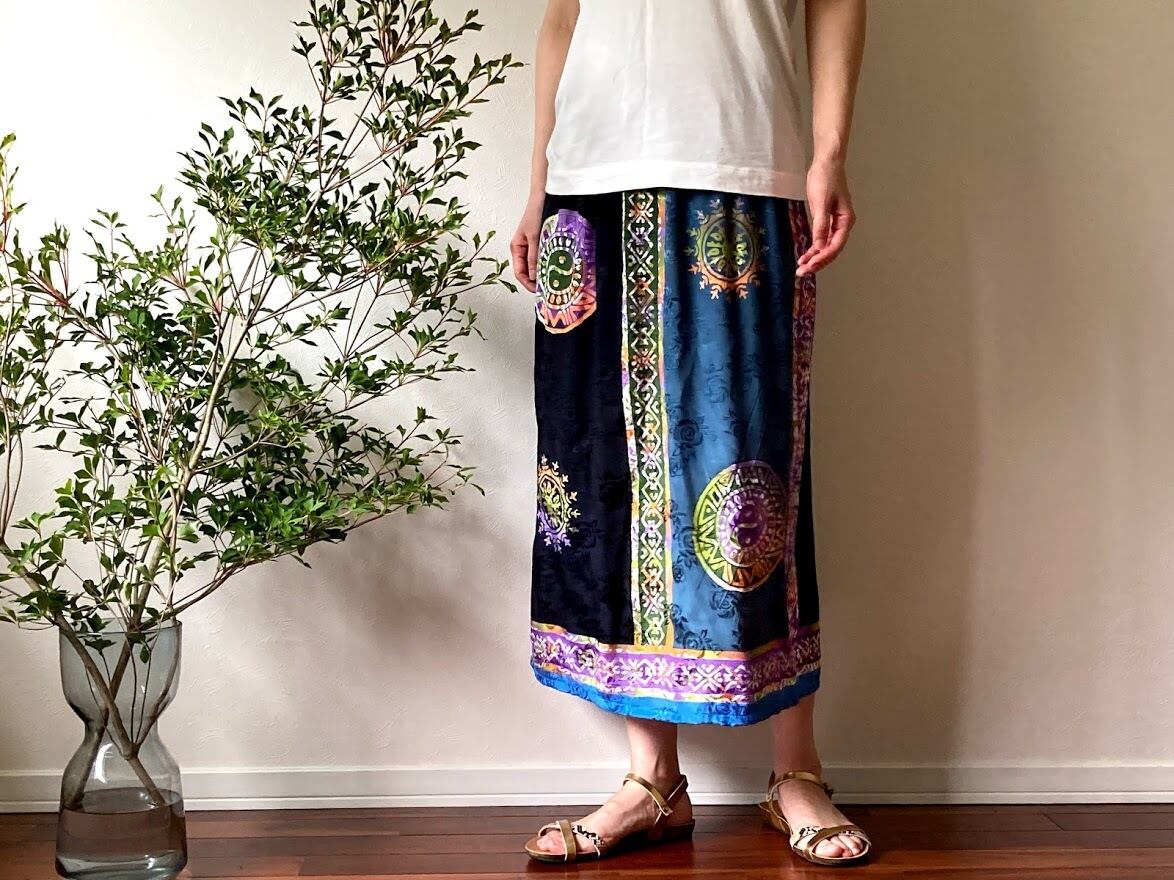 手書きと型押しのろうけつ染めで作られた、ジャワ更紗スカート。
