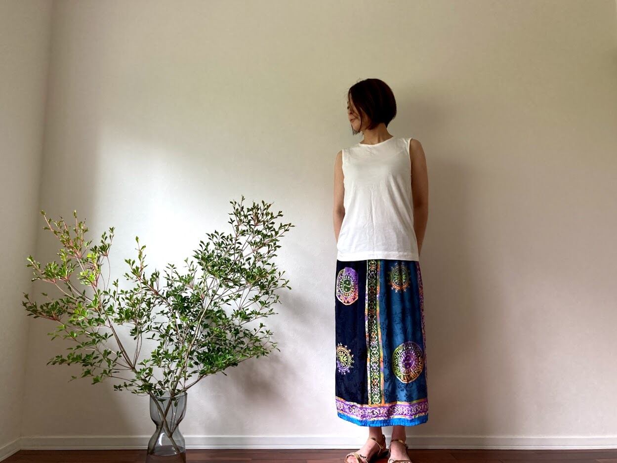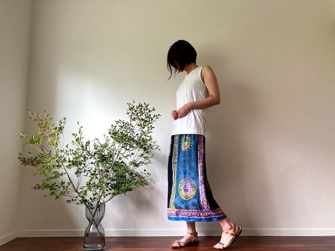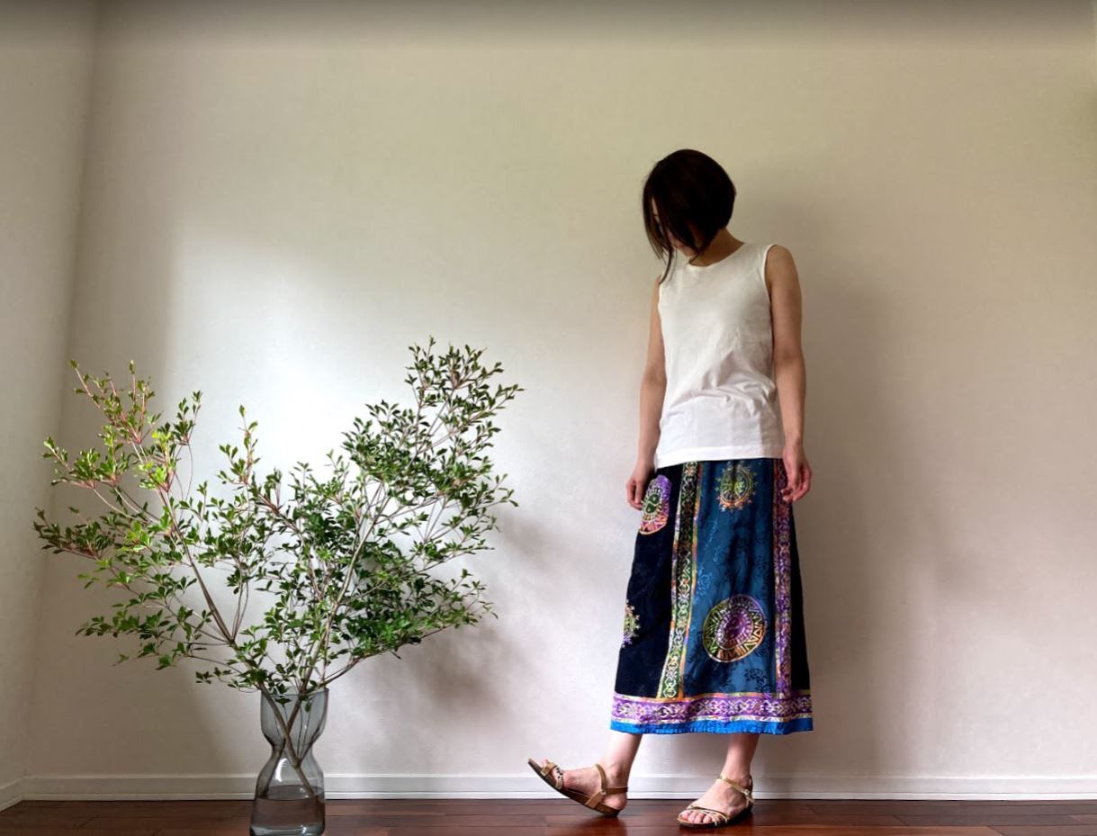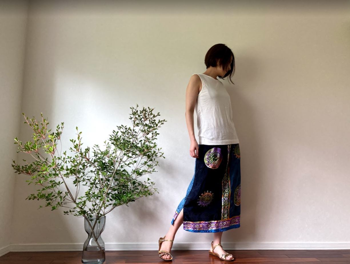 手書きと型押しのろうけつ染めで作られた、ジャワ更紗スカート。