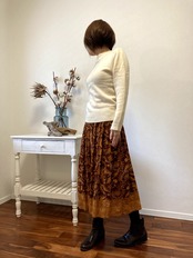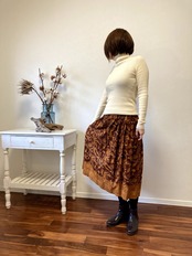 無地のトップスと合わせると、スカートの鮮やかな柄と色が