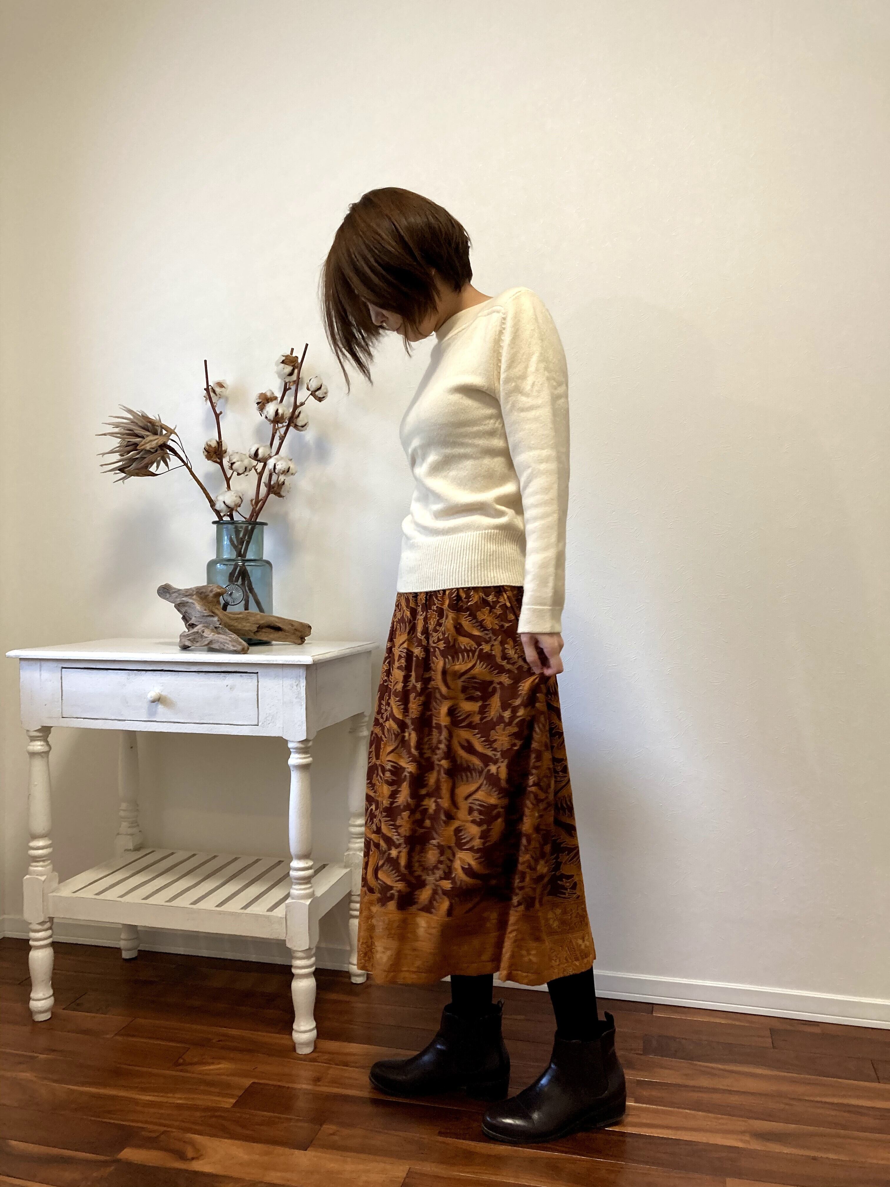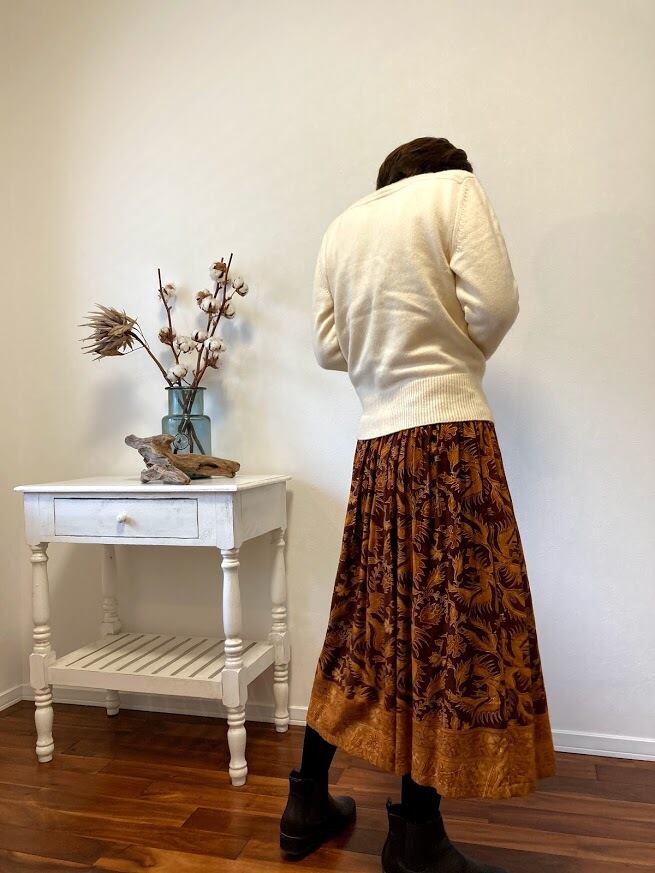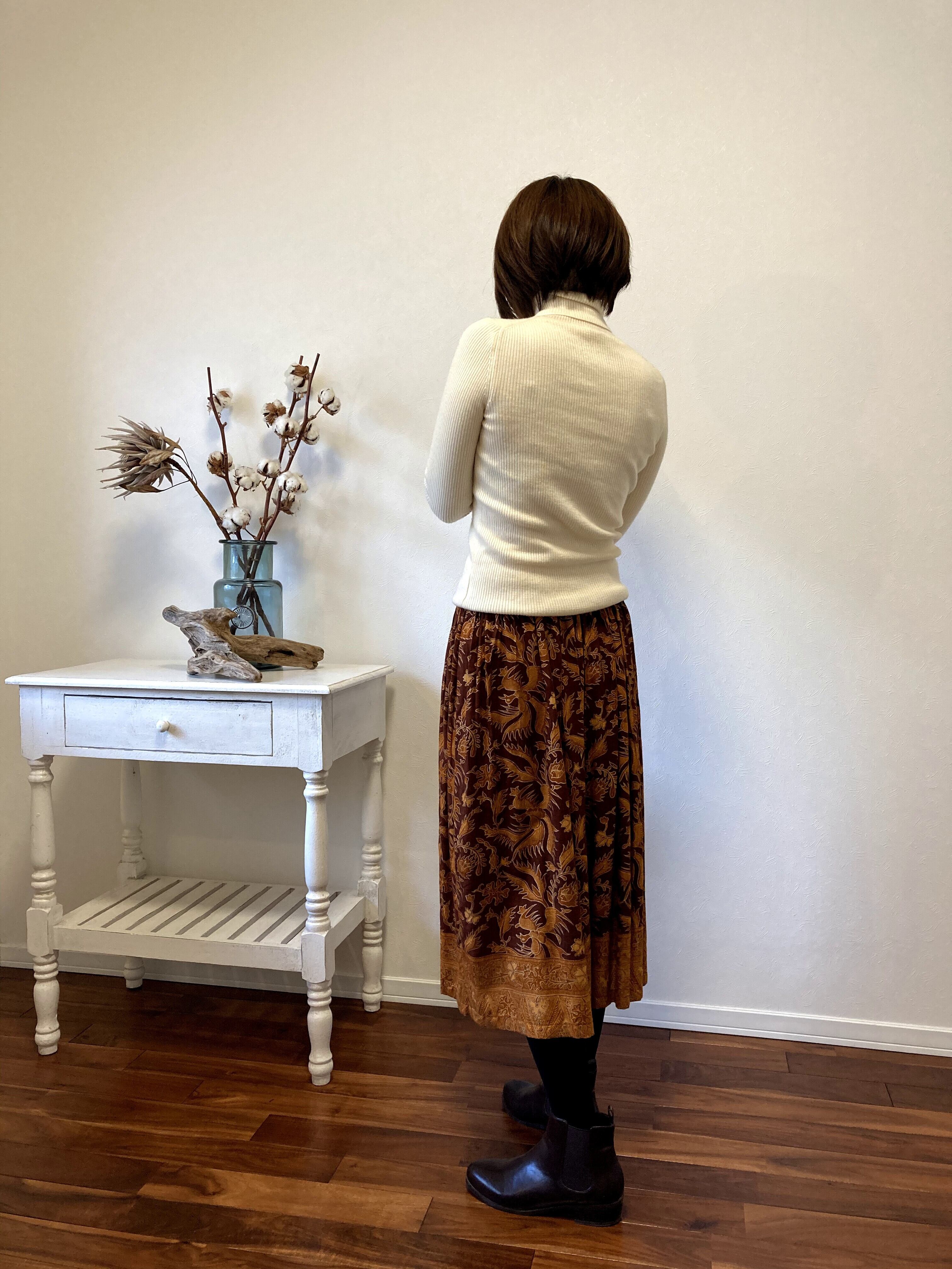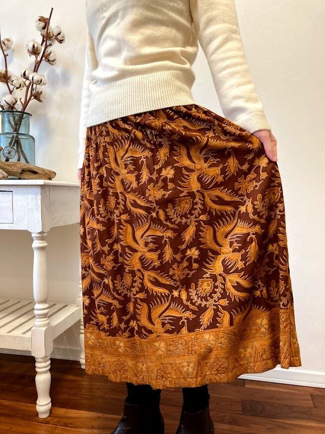 落ち感のある素材で作られた、ジャワ更紗スカート。