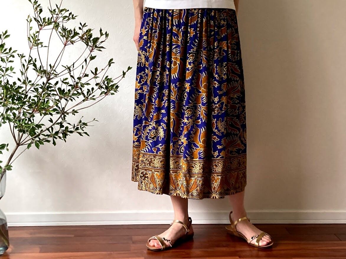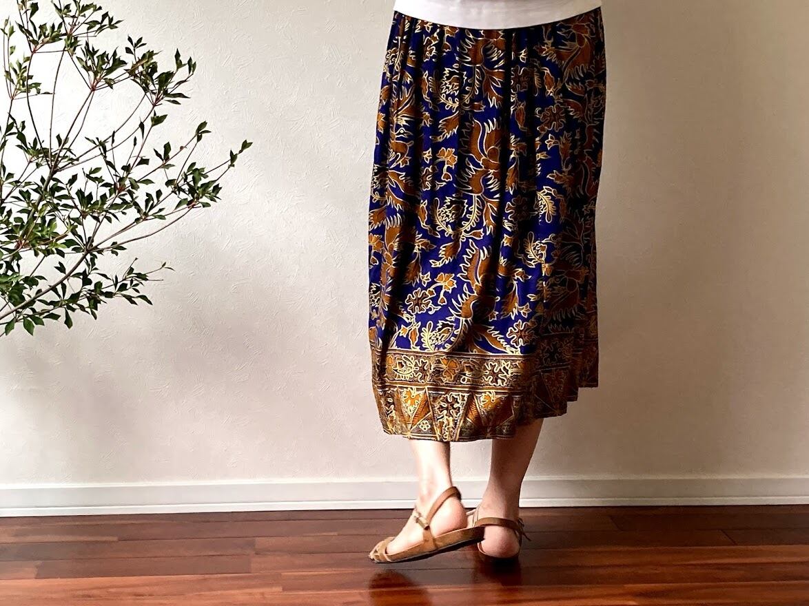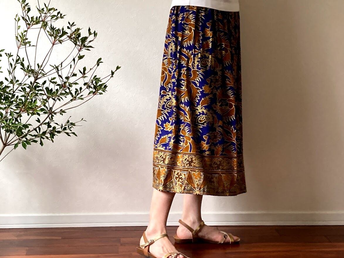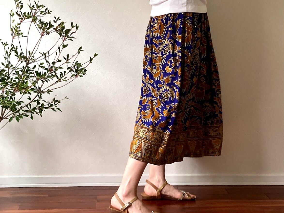 落ち感のある素材で作られた、ジャワ更紗スカート。
