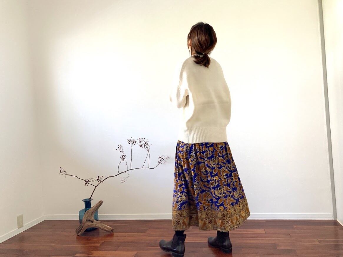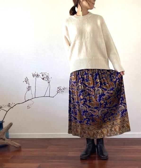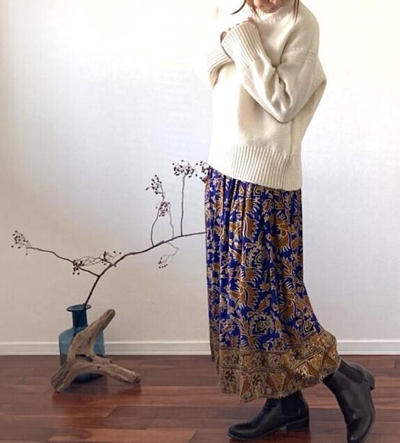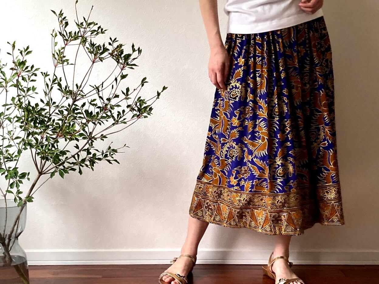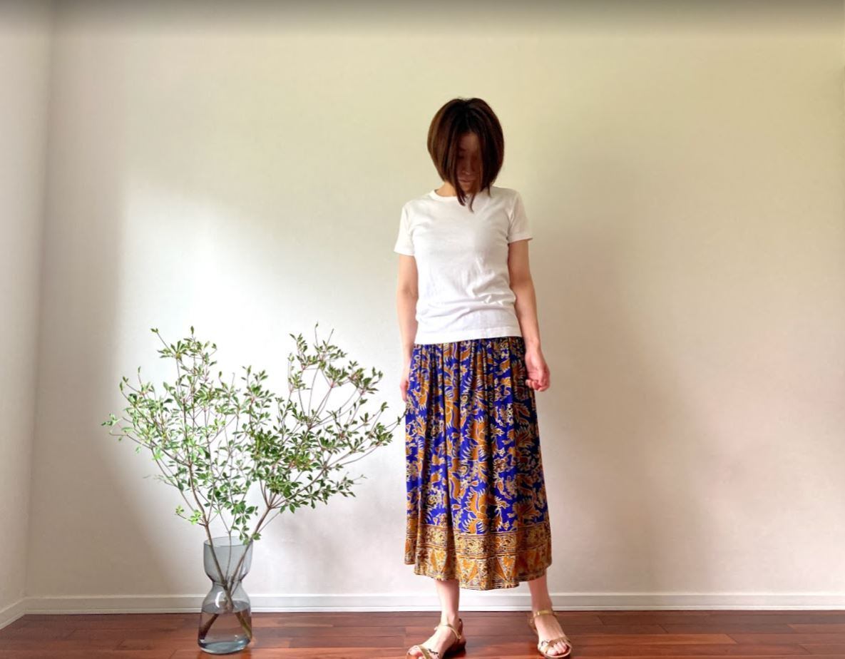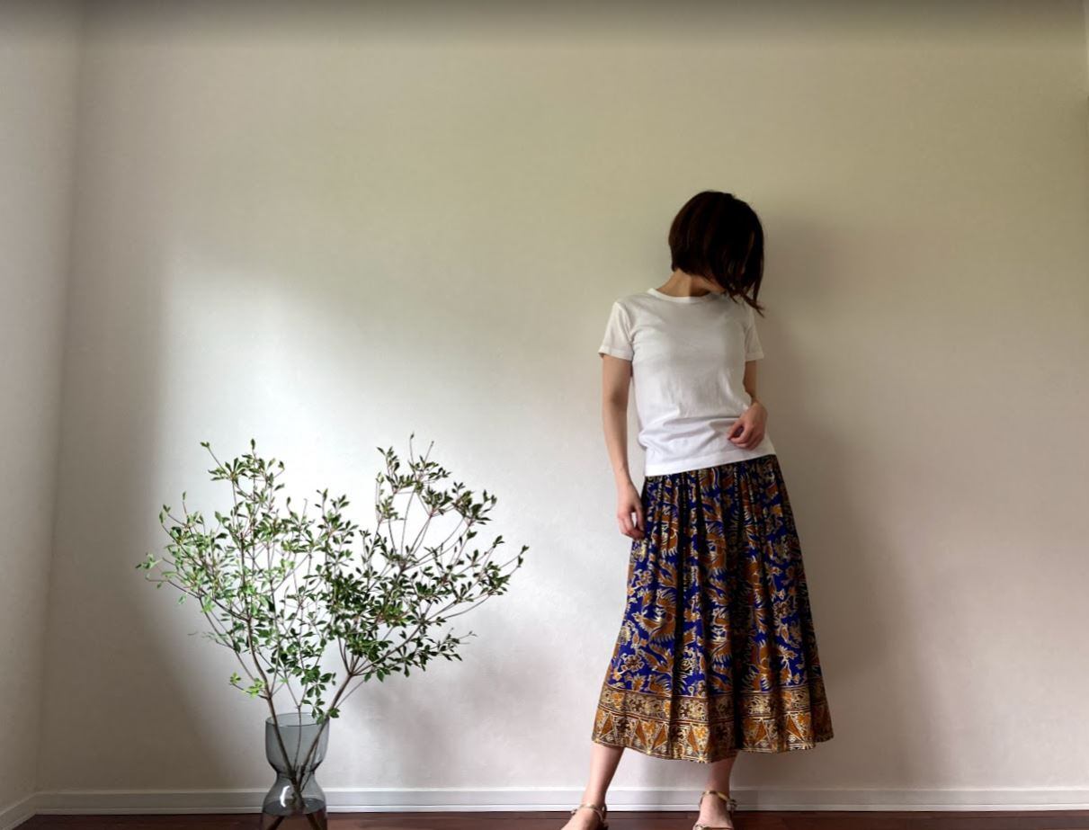 落ち感のある素材で作られた、ジャワ更紗スカート。