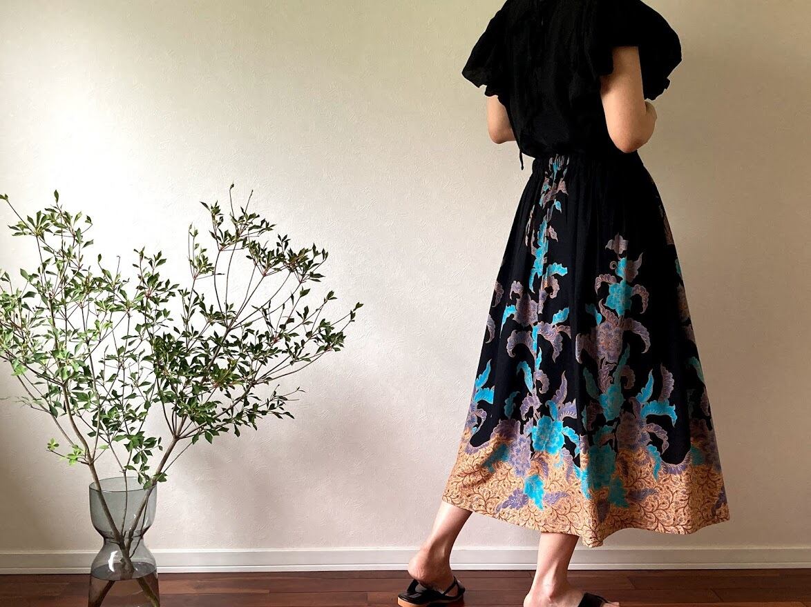コットン100%のジャワ更紗スカート。