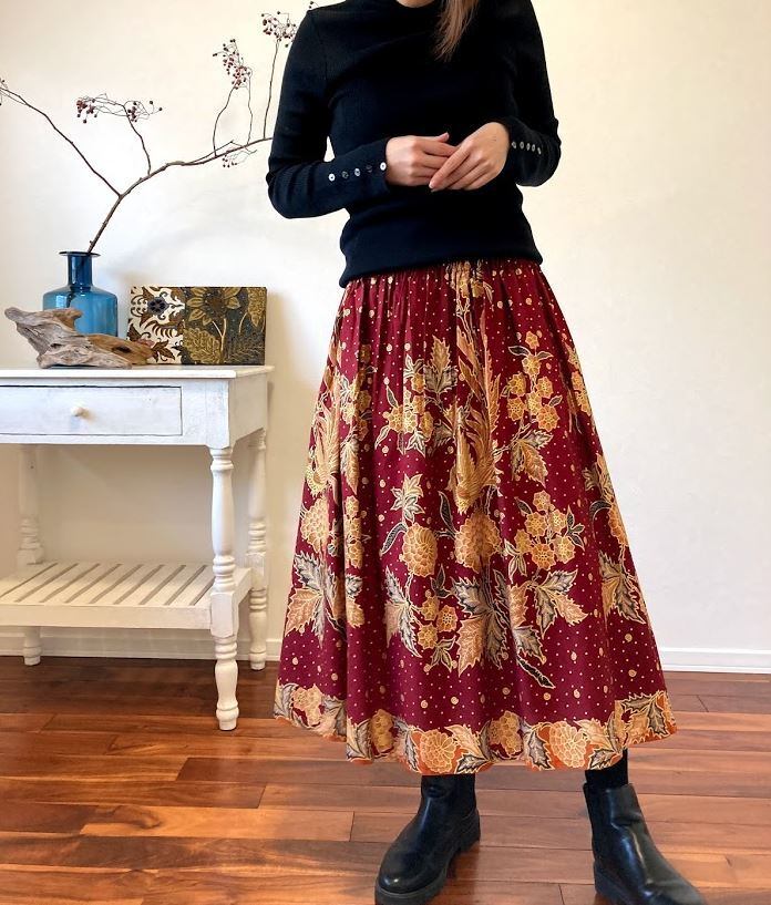 コットン100%のジャワ更紗スカート。
