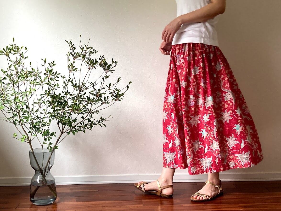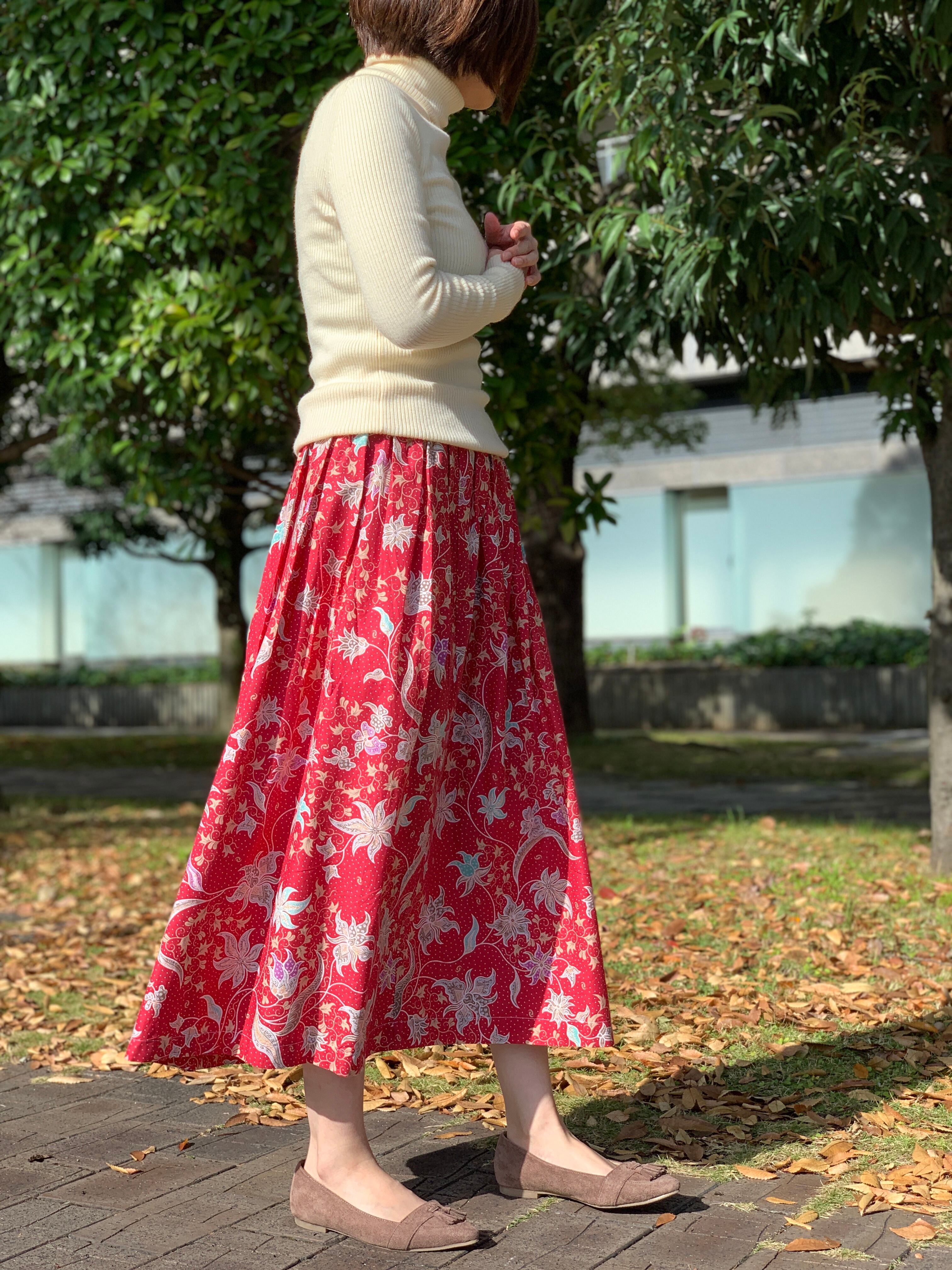 コットン100%の、ジャワ更紗スカート。