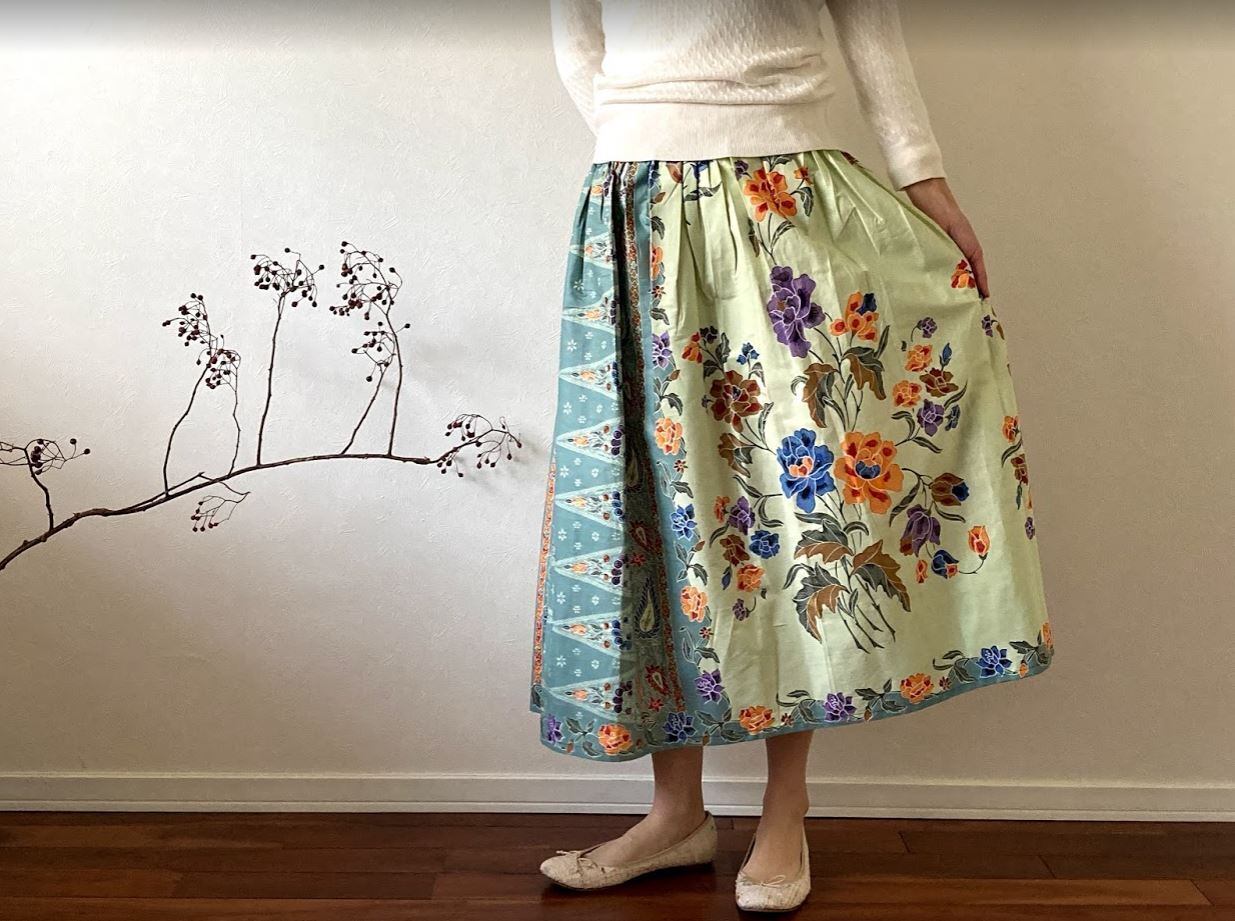 コットン100%のジャワ更紗スカート。