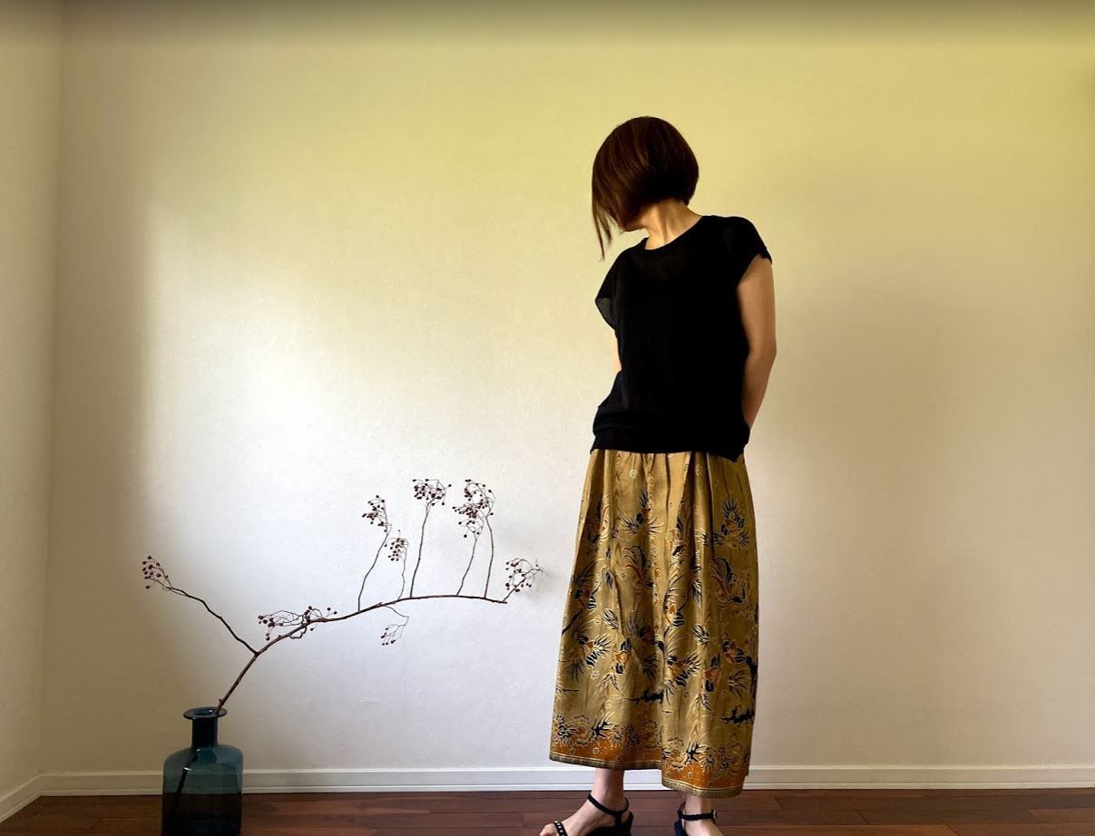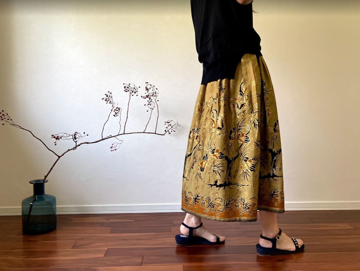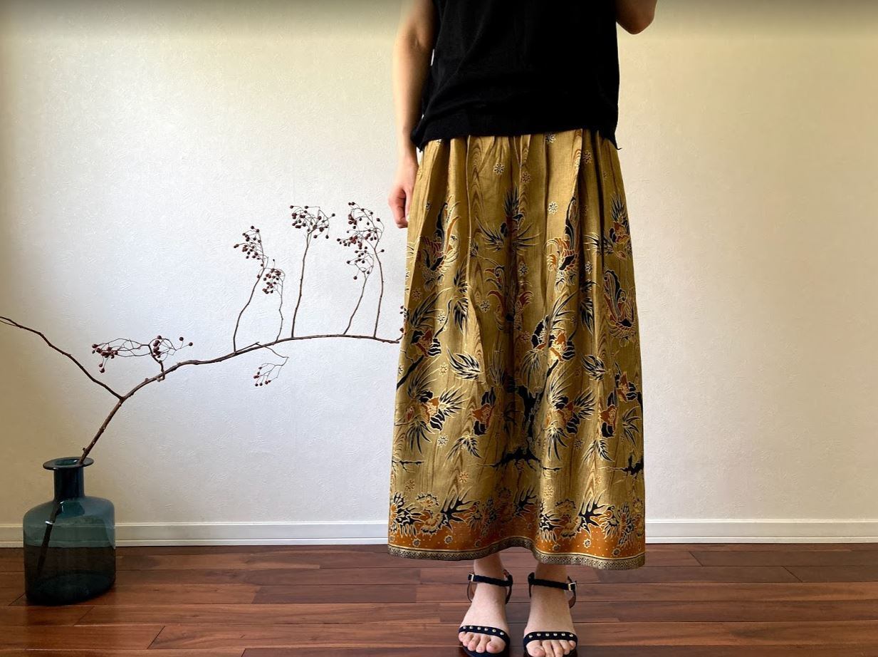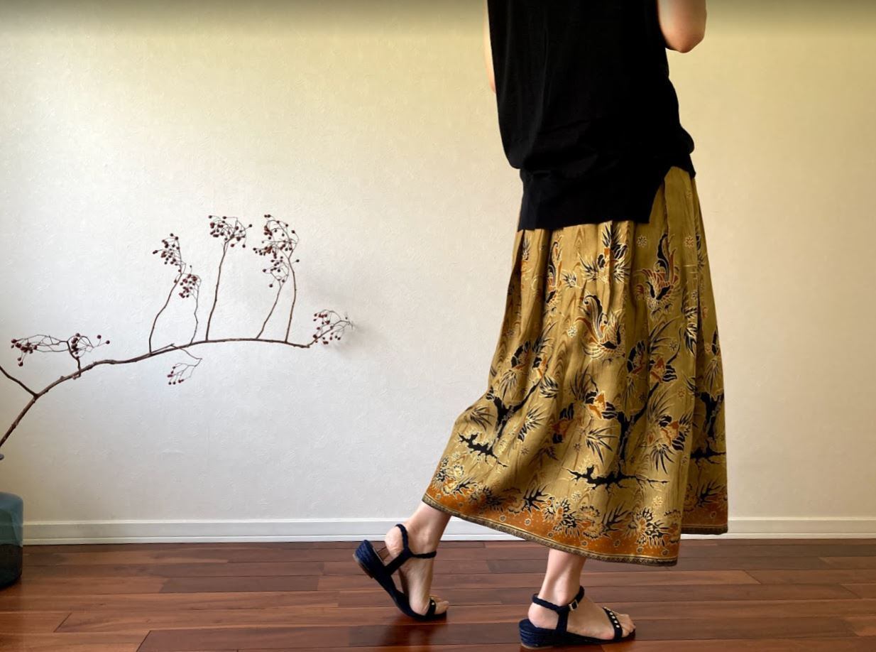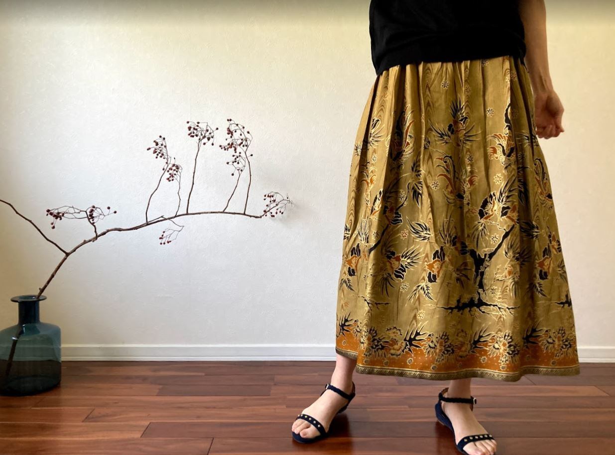 コットン100%素材で作られた、ジャワ更紗スカート。